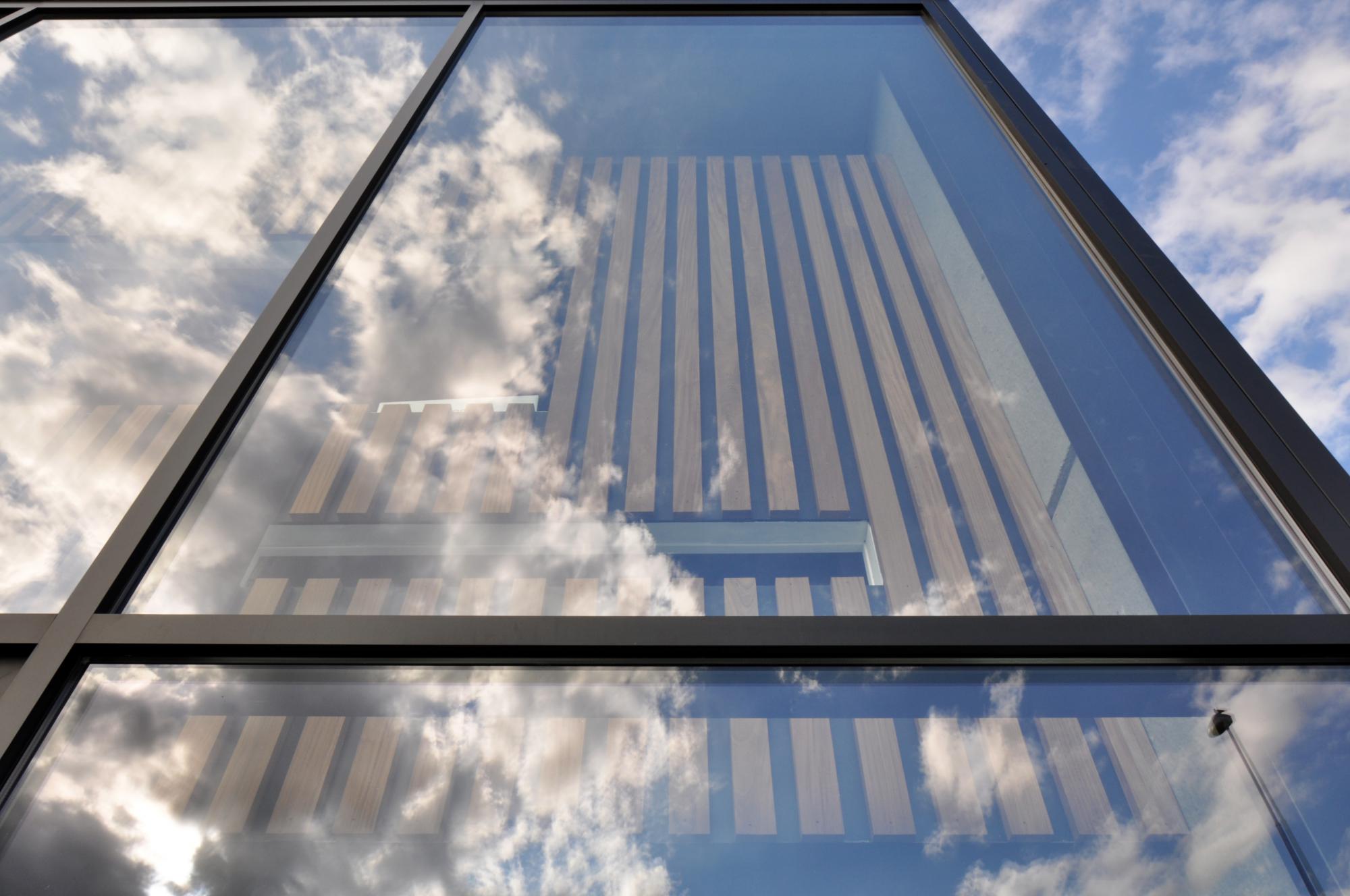 Door de kopse gevels volledig te beglazen ontstaat een imposante openheid, zowel van binnen naar buiten als van buiten naar binnen.